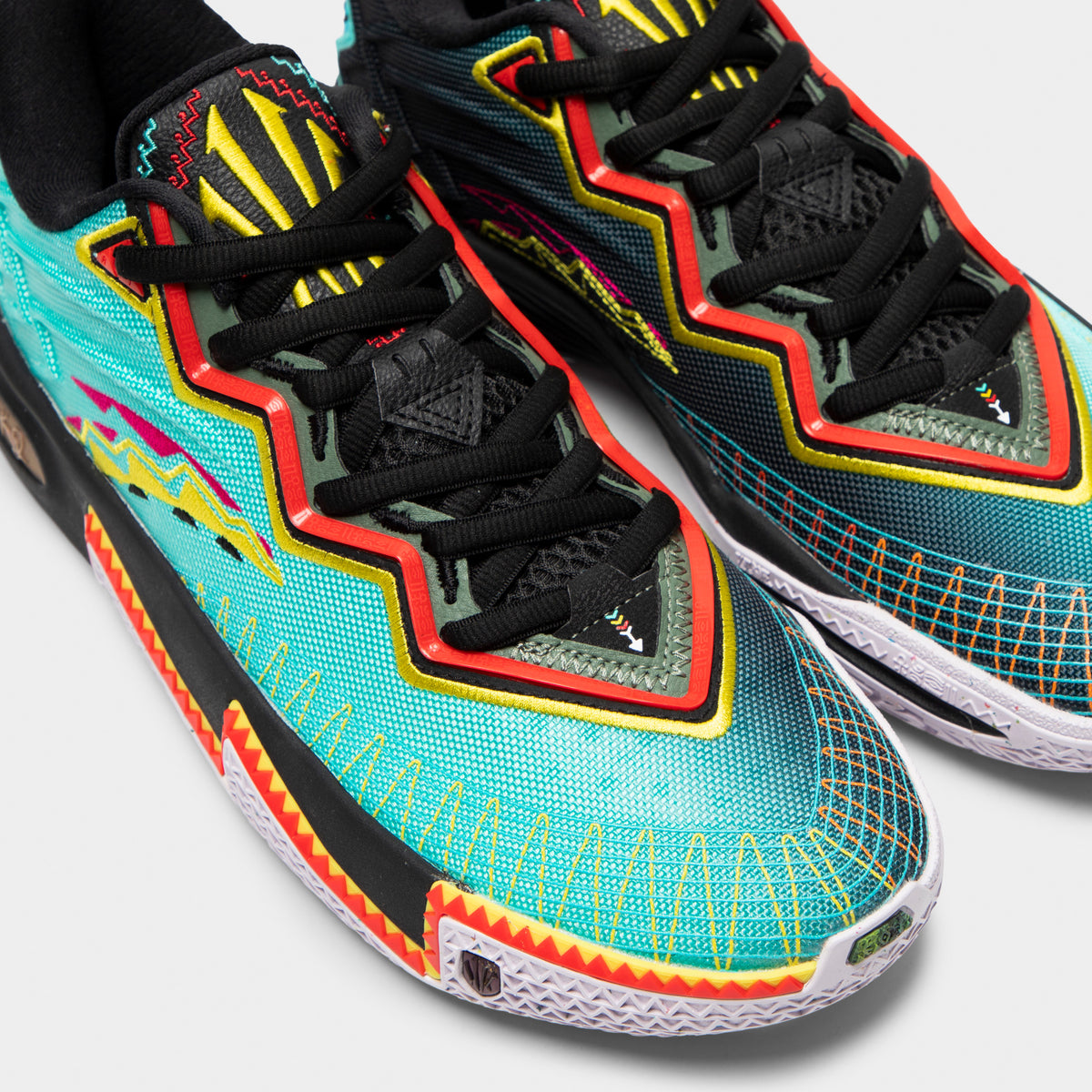 L'ANTA KAI 2 Retro 90, déclinée en bleu sarcelle, noir et orange, capture l'énergie audacieuse des années 90 avec des innovations modernes et performantes. Associant broderies accrocheuses, lignes dynamiques et amorti à l'azote, elle est conçue pour les joueurs créatifs, sur le terrain comme dans la rue.