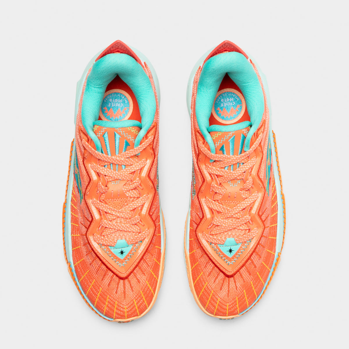 Conçue pour le jeu ultra-rapide de Kyrie, l'Anta Kai 2, déclinée en orange clair et bleu ciel, fait vibrer le parquet et la rue. De la vitesse d'attaque à l'allure irrésistible, cette paire est tout en puissance, sans frein.