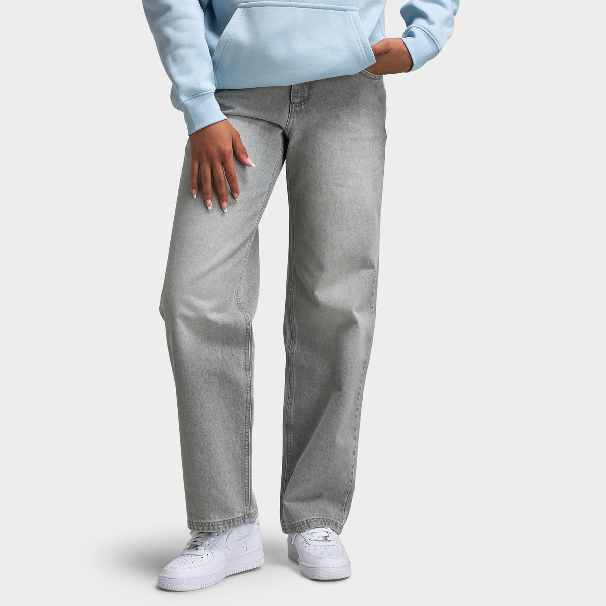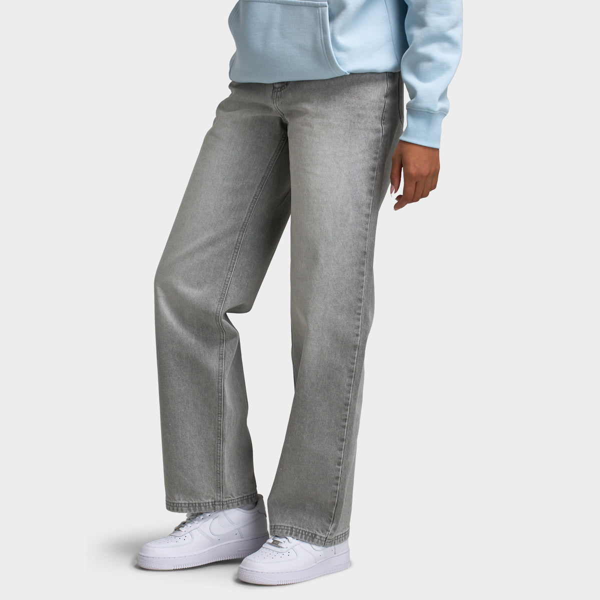 Découvrez votre nouveau jean incontournable. Le jean taille mi-haute Unlike Humans pour femmes, délavé gris, est idéal pour les journées décontractées, les coupes audacieuses et tout ce qui se trouve entre les deux.
