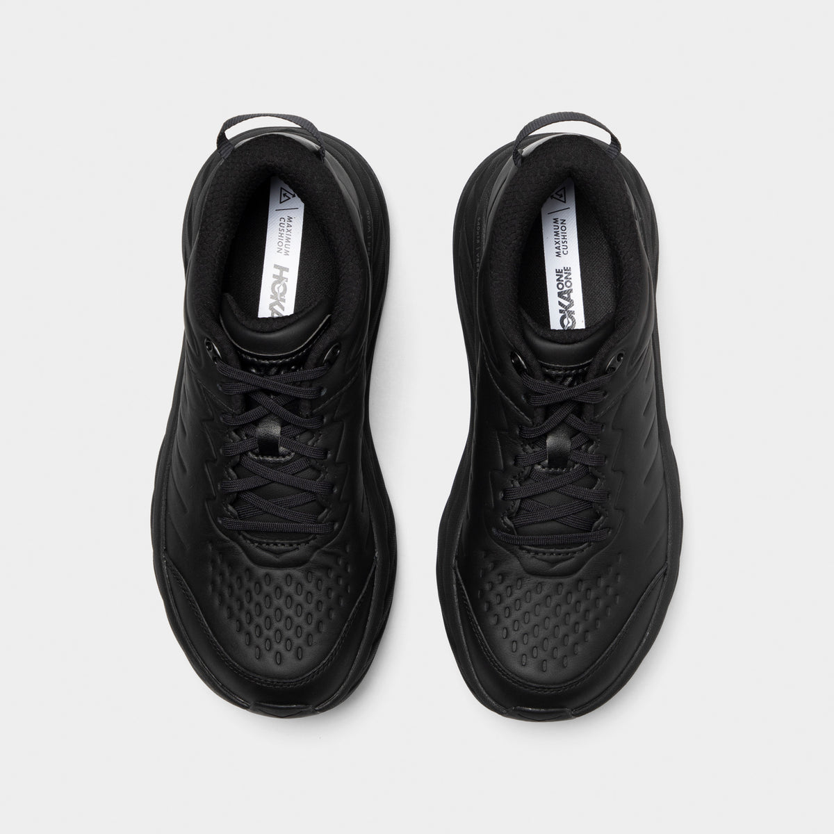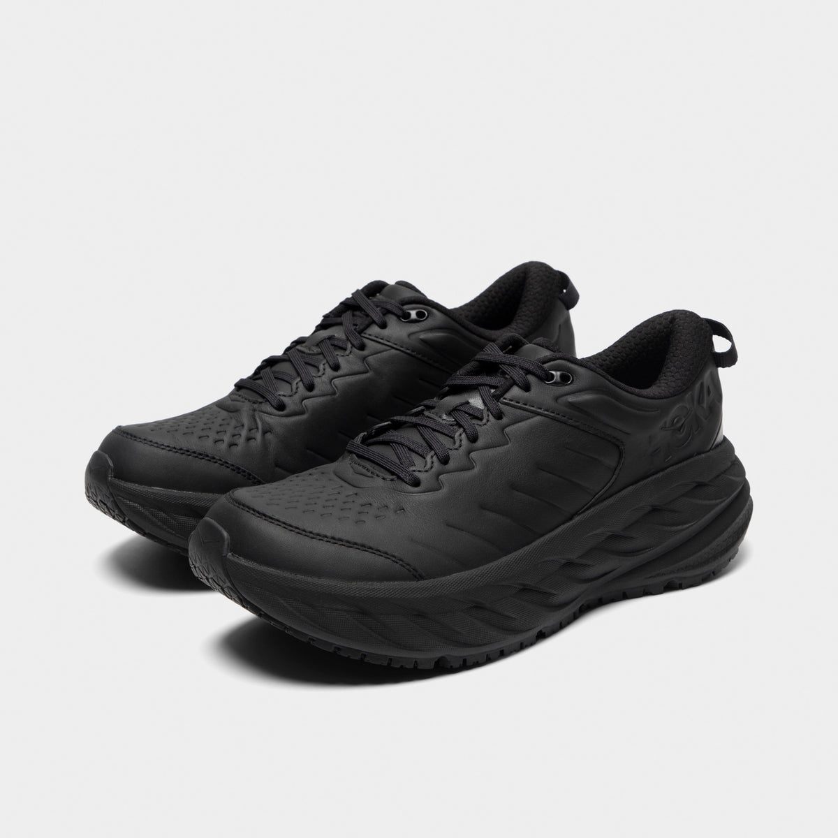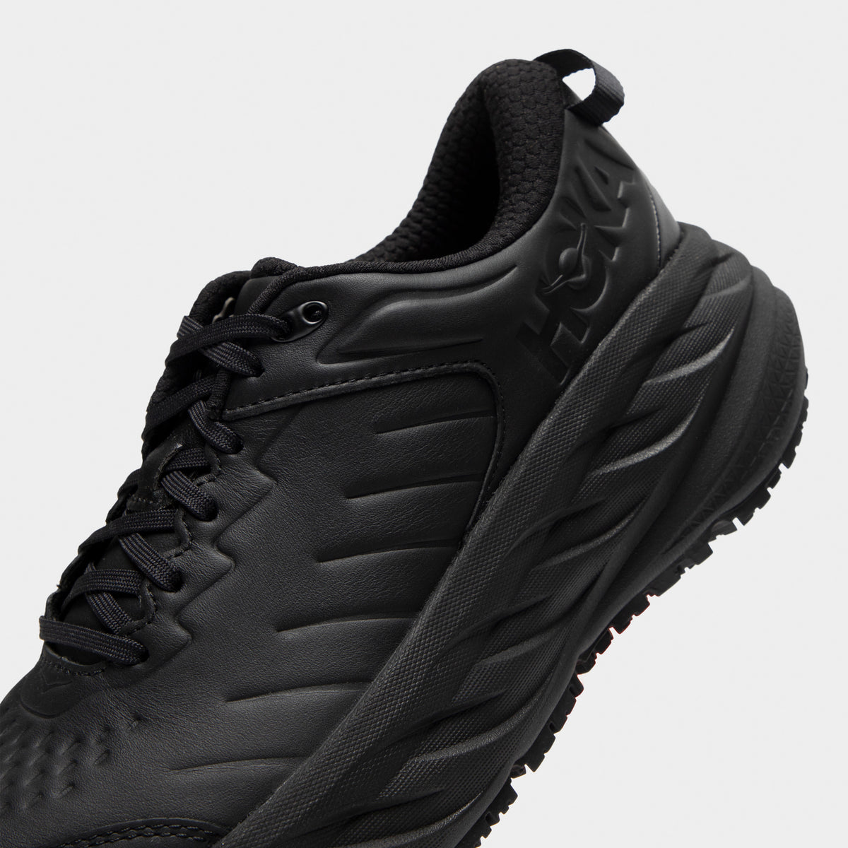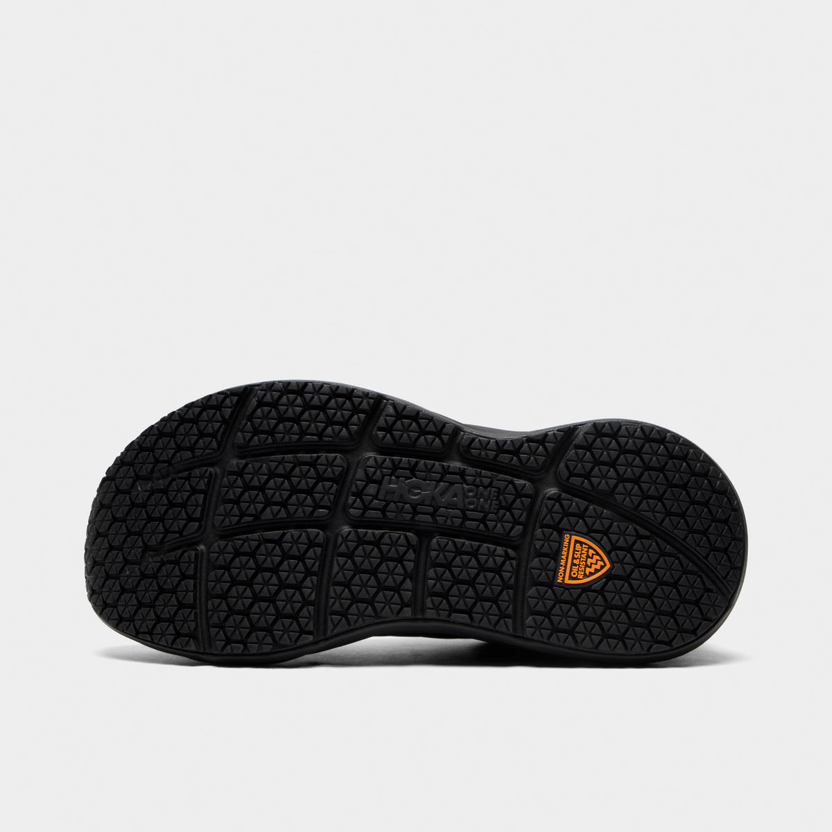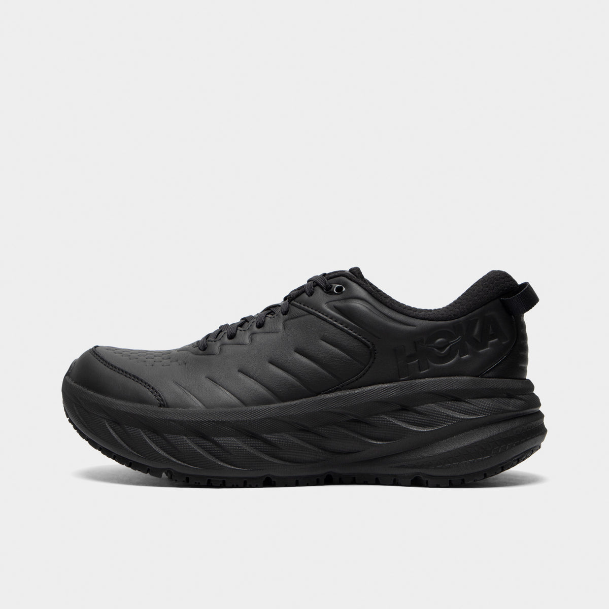 The Hoka Bondi SR takes the legendary cushioning of the Bondi and adapts it for the rigors of daily life, particularly in service and medical fields. Crafted with water-resistant leather, these shoes are built to withstand the elements while providing all-day comfort. The EVA midsole and memory foam collar offer plush cushioning, while Early stage MetaRocker™ technology ensures a smooth and efficient stride. The slip-resistant rubber outsole with full ground contact tread provides durable traction, making these shoes the perfect fit for demanding environments. Whether you’re on your feet all day or navigating slippery surfaces, the Bondi SR delivers the comfort and support you need.