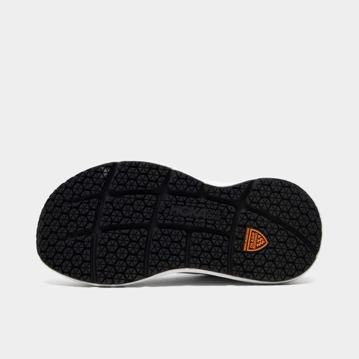 The HOKA Women’s Bondi SR transforms the brand’s most cushioned road runner into a work-ready essential. Built with a water-resistant leather upper and grounded by an ultra-grippy, slip-resistant sole, it’s designed to meet the demands of long shifts on your feet. The EVA midsole and signature MetaRocker™ keep every step smooth and supported, while the memory foam collar locks in comfort around the ankle. A true balance of function and comfort, tailored for everyday performance.
