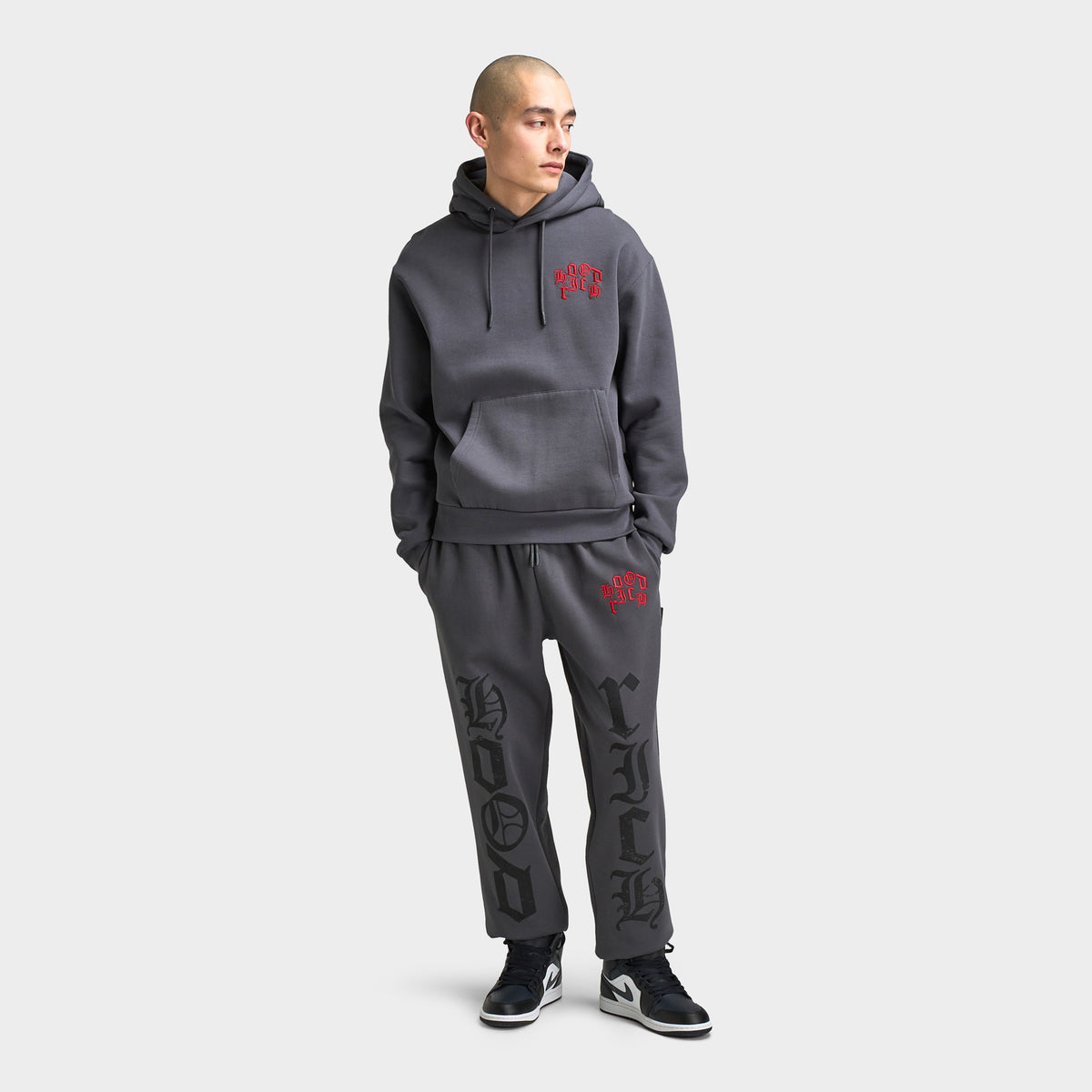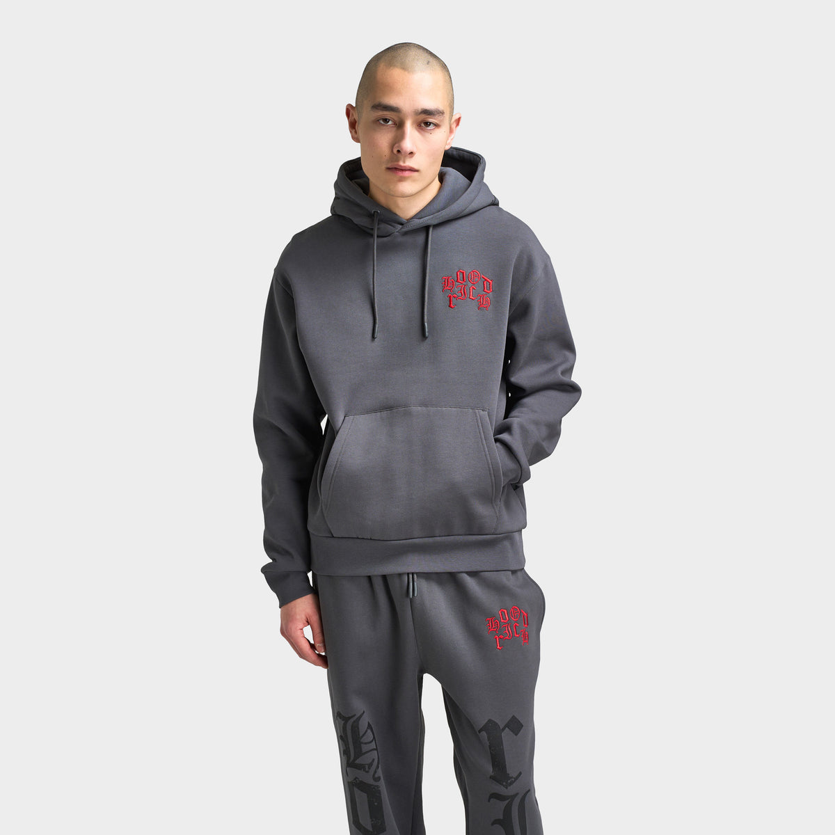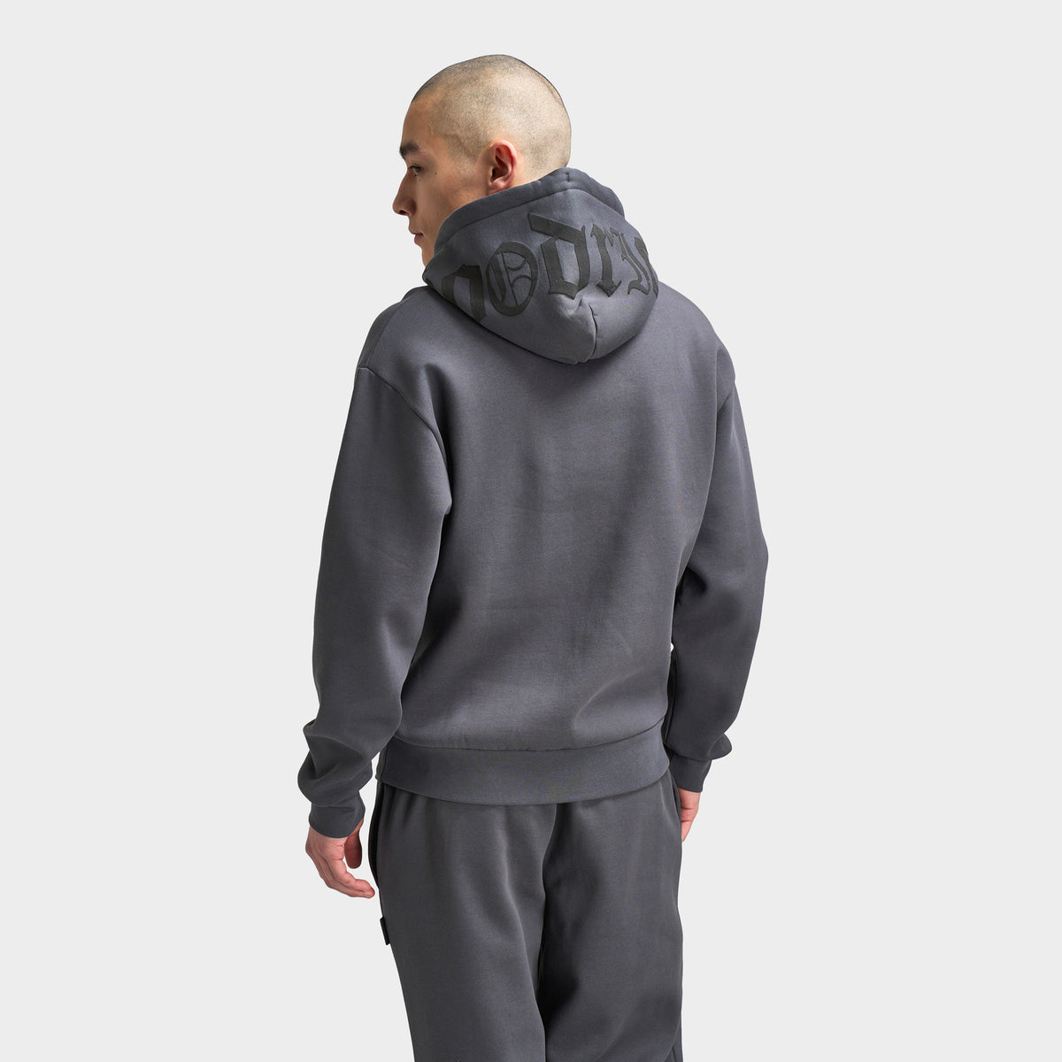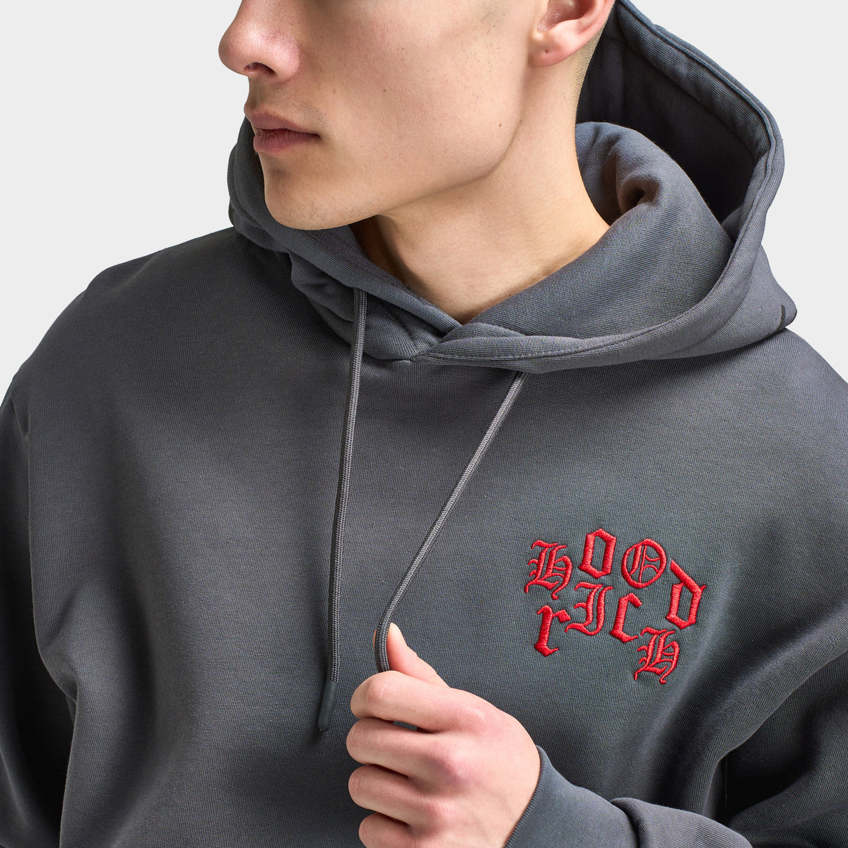 Stay cozy in bold streetwear style with this oversized pullover hoodie from Hoodrich. Crafted from soft brushback fleece, it features a roomy fit with ribbed cuffs and hem for a secure feel. The kangaroo pocket adds a practical touch, while gothic lettering on the hood brings an edgy vibe. Complete with a pullover hood and adjustable drawcords, it’s made from an 80% cotton, 20% polyester blend for all-day comfort and durability.