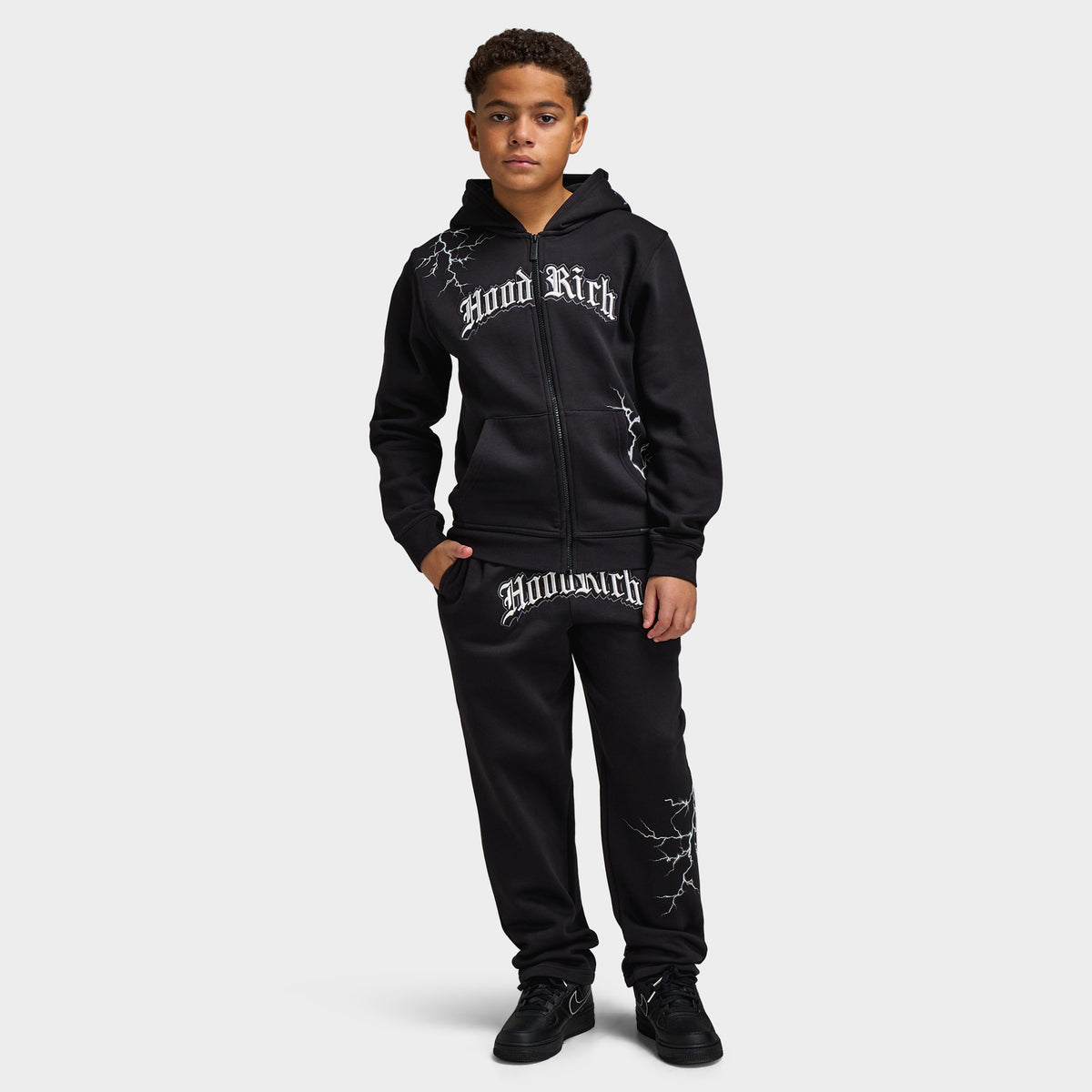 The Hoodrich Juniors’ Dark Lightning Full-Zip Hoodie in Black pairs bold streetwear flair with everyday comfort. Featuring a statement gothic “H,” cozy fleece fabric, and a versatile zip-up design, it’s perfect for layering up in style.