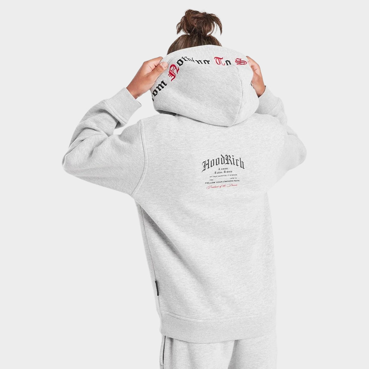Hit the streets in this Juniors' Gothic Pullover Hoodie from Hoodrich. In a grey colourway, this hoodie is cut from soft fleece fabric for everyday comfort. It features a pullover hood for coverage, with ribbed trims to hold the shape and a kangaroo pouch for your essentials. Finished up with gothic Hoodrich branding to the chest.