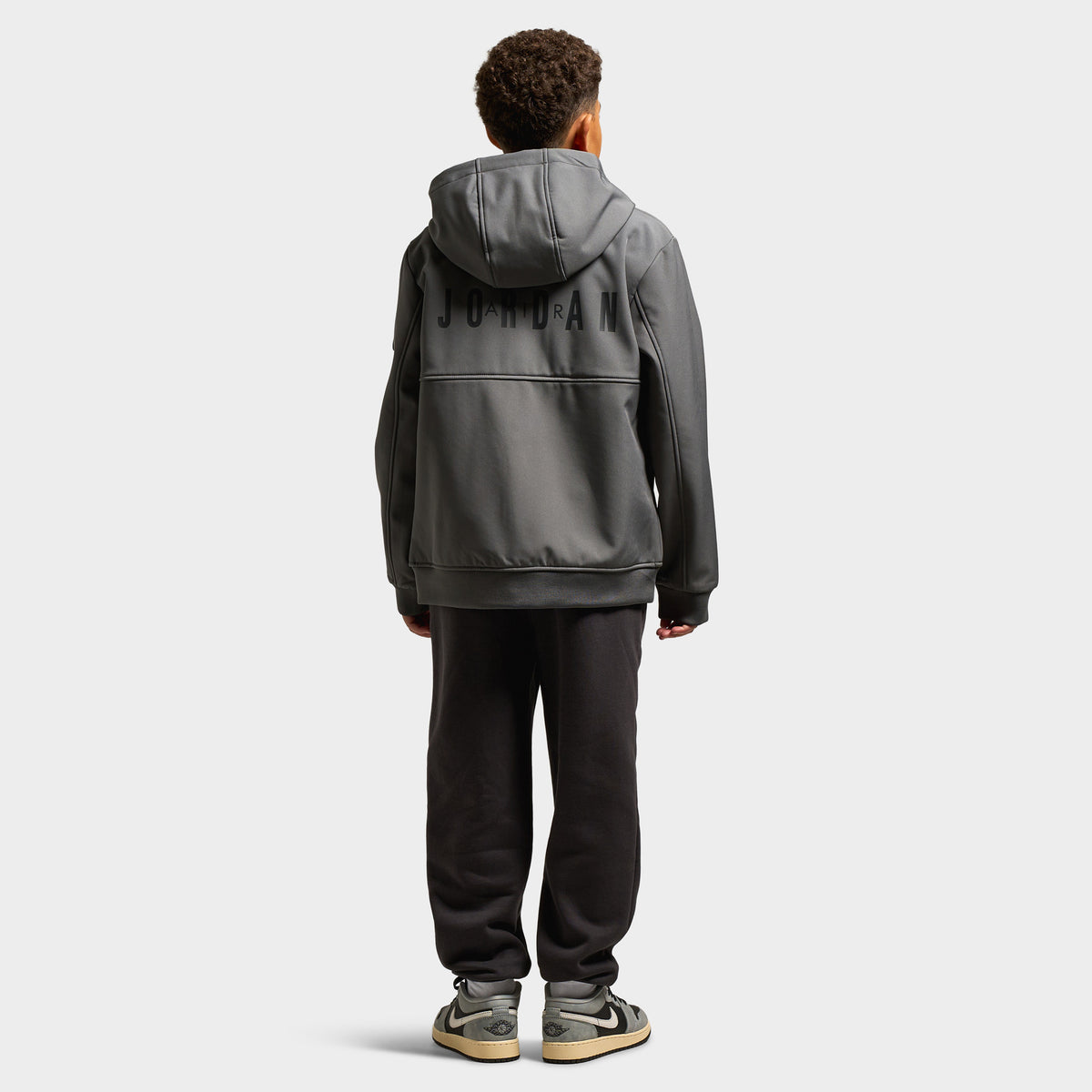 Engineered for everyday ease, the Jordan Juniors’ Soft Shell Jacket in Iron Grey brings soft fleece comfort with smart layering functionality. Featuring a relaxed fit, full zip, and utility hood, it balances sporty freedom with refined Jordan identity, ready for youth rotations that demand both comfort and style.