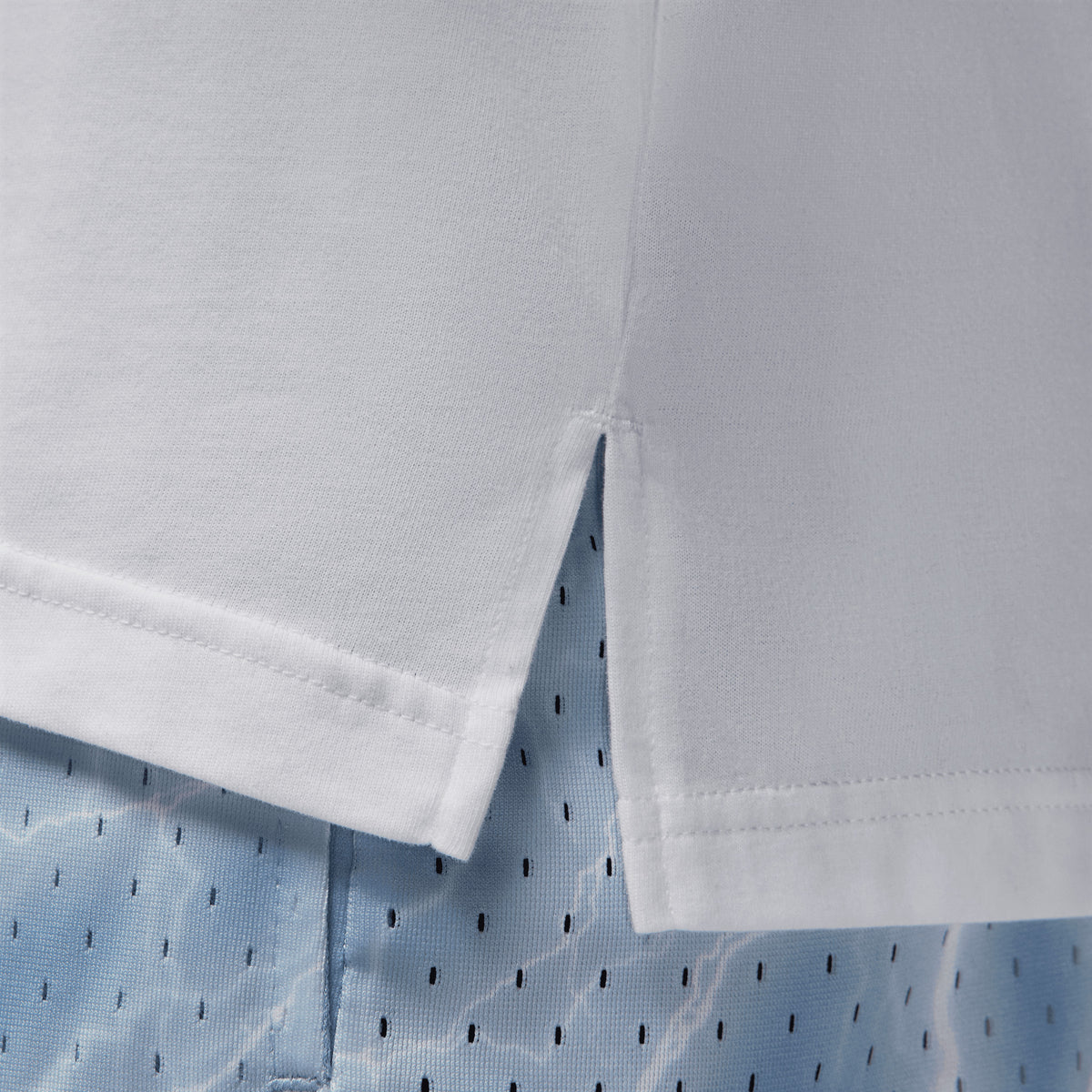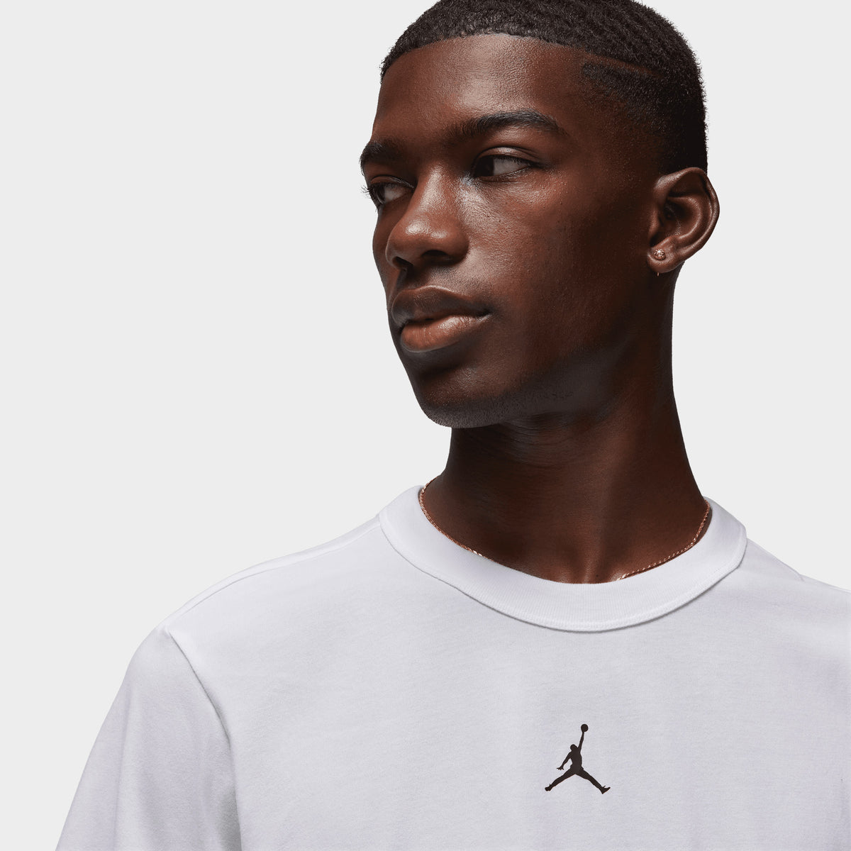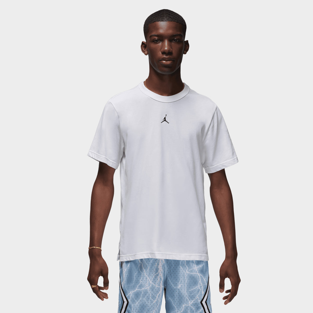A gym shirt or leisure top, the Jordan Sport Dri-FIT T-shirt has a sweat wicking technology that keeps you comfortably dry, fast. Minimalist screen-printed Jumpman on chest a split hem adds maximum freedom of movement.