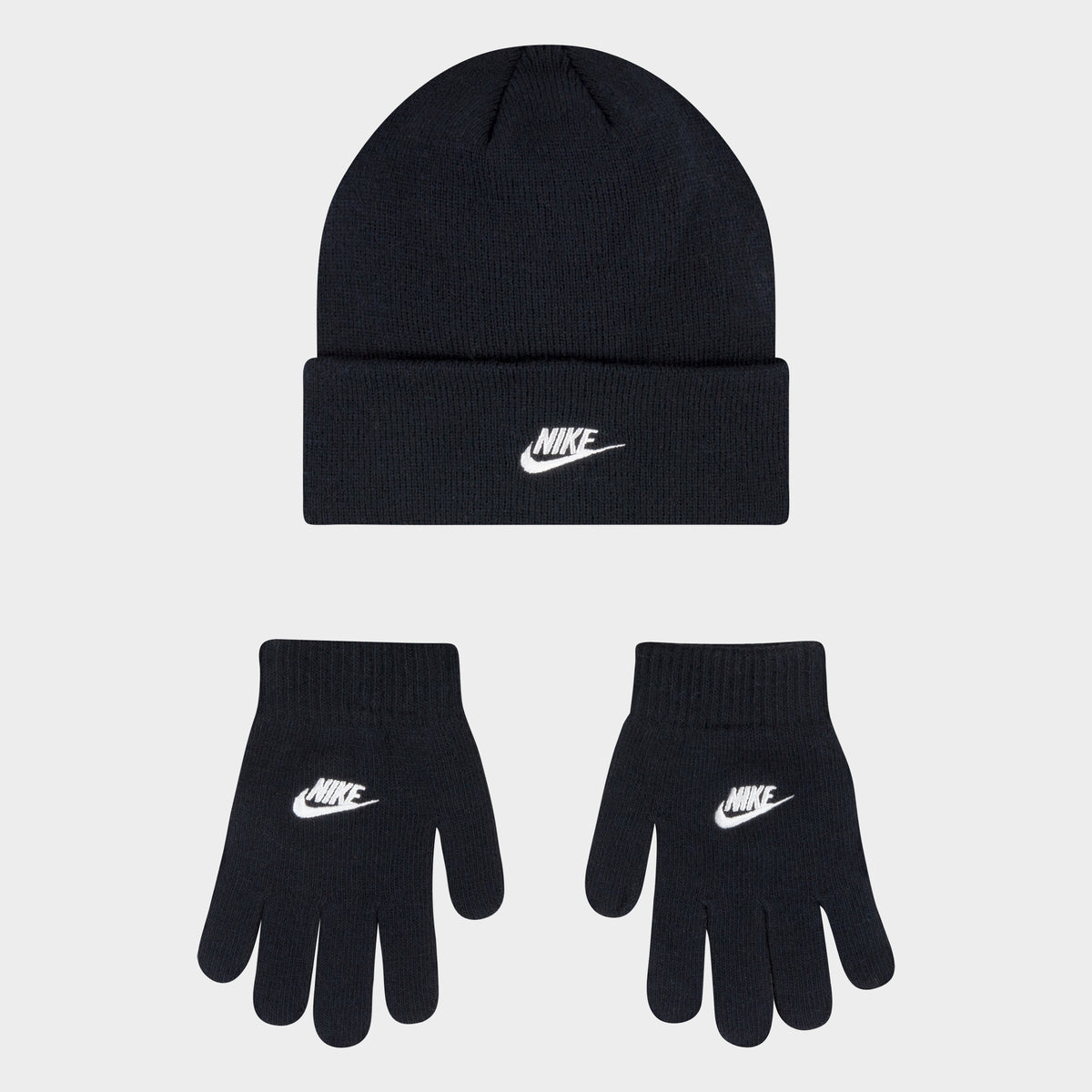 Keep them cozy this cold season. The Nike Big Kids Club Beanie and Gloves set is the perfect way to lock in heat, whether they're heading to school or hanging with friends. The beanie is made with a soft and comfy knit material, and both the gloves and beanie are finished off with the iconic Nike logo.