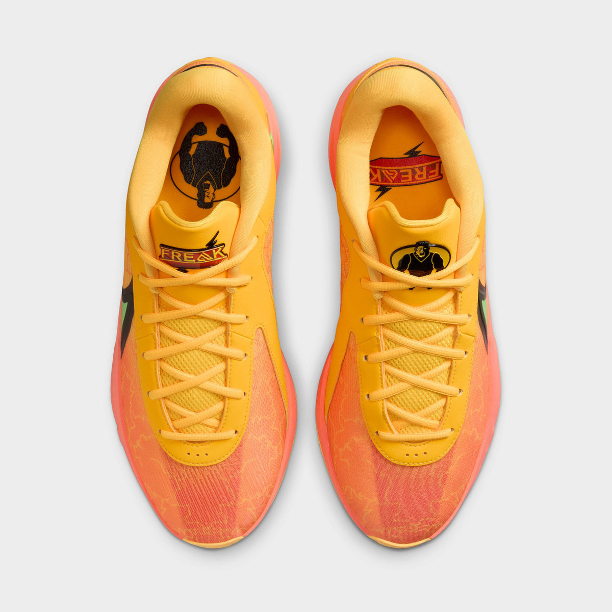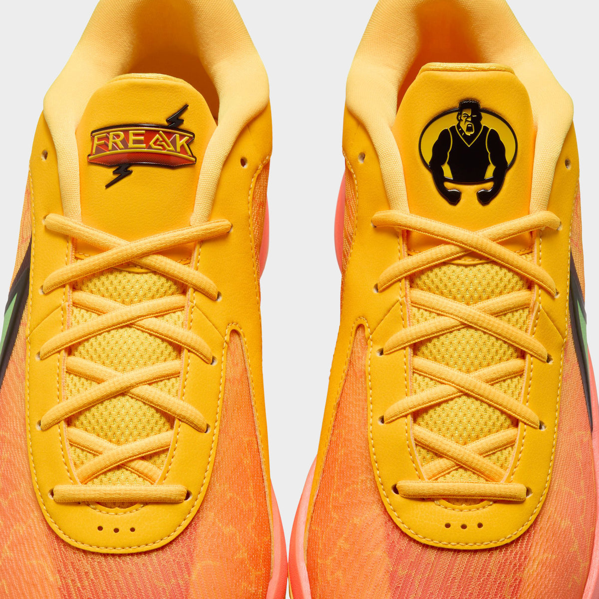 This "Halloween" colourway of the Nike Zoom Freak 6 NRG is designed with a blend of leather and mesh that stands out with colourful mesh and leather overlays all along the midfoot. A cracked pattern also makes its way across the upper to add extra dimension to the silhouette Some more interesting details include the Giannis logos on the tongues and insoles. This style oozes bold personality.