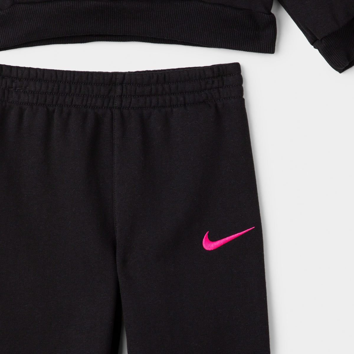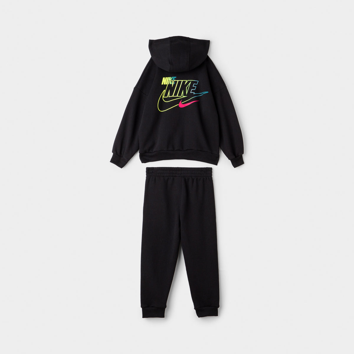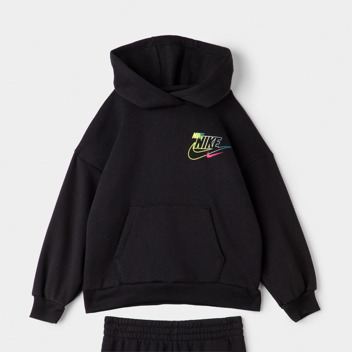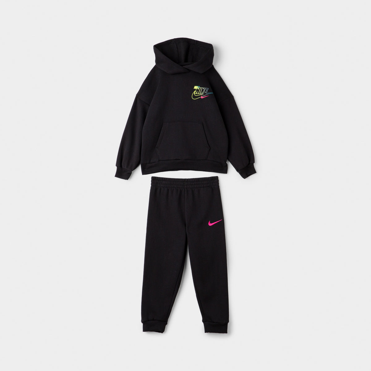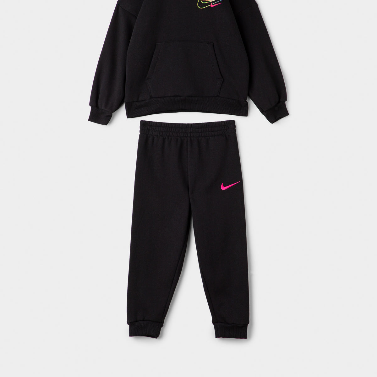 The Nike Sportswear Children's Glow Fleece Set brings together cozy comfort and playful style for your little one. Made from soft fleece, it delivers lasting warmth whether they’re heading to school, relaxing at home, or playing outside. The ribbed trims keep everything in place, while the joggers’ elastic waistband ensures an easy, comfortable fit. Side pockets add practicality, and the sleek Nike design keeps their look sporty and fun all day long.