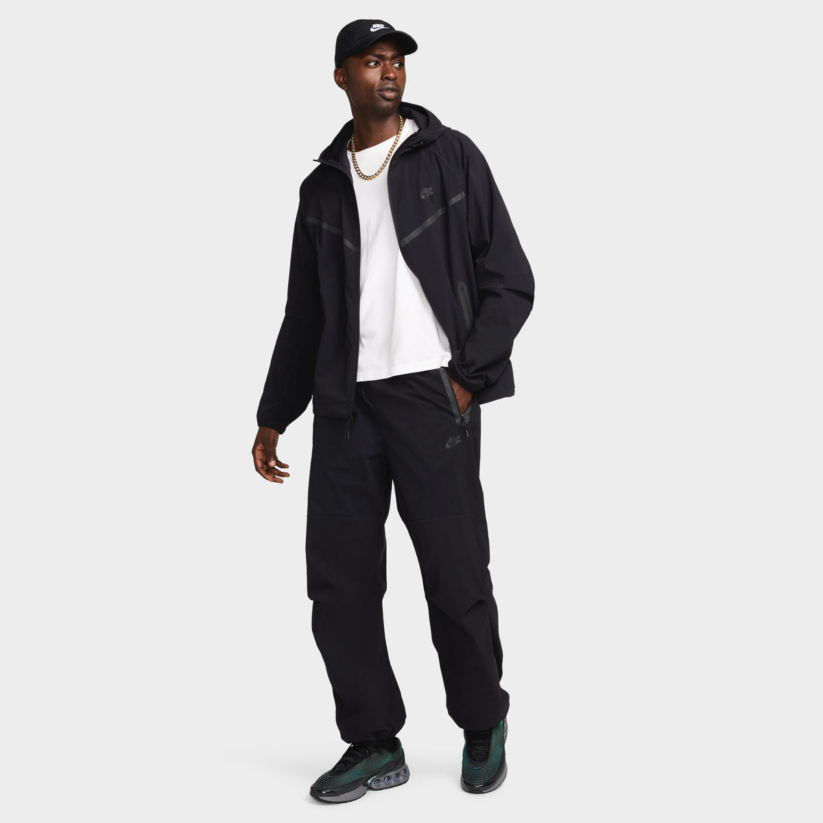 Crafted with stretchy woven material, these Nike Tech Oversized Pants offer you ease of movement and adjustability. The wide-leg cut is paired with bungee locks at the ankles that let you switch up the fit while its lightweight fabric moves sweat away from your skin for quick evaporation, helping you stay dry and comfy. The articulated knees are crafted with movement in mind, and add a distinct Nike Tech aesthetic to this slick style.