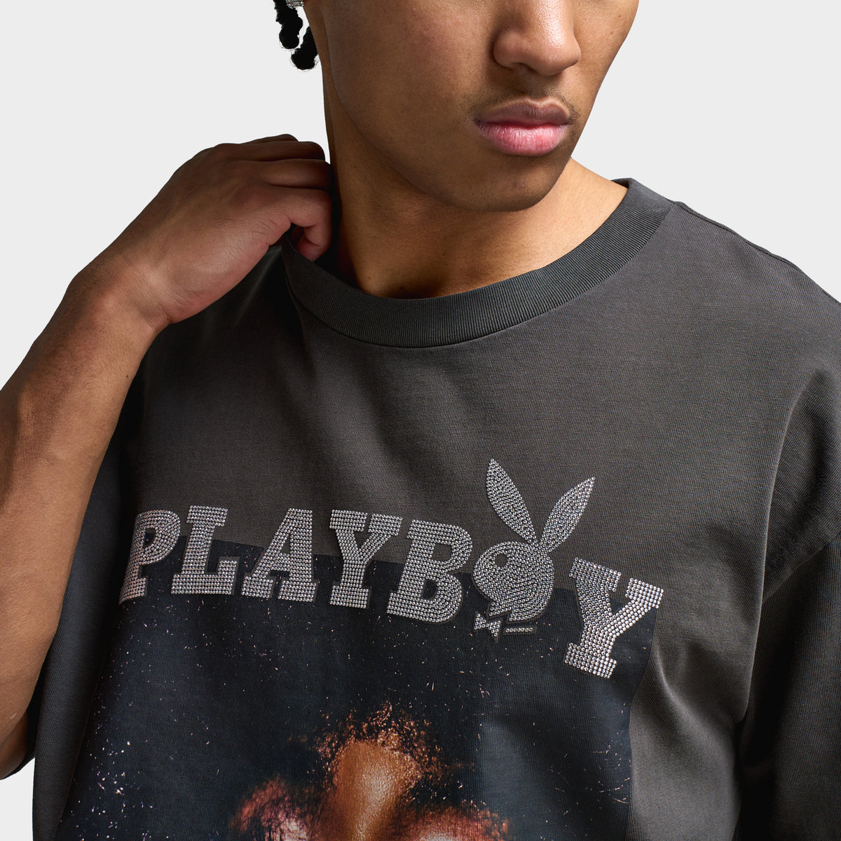 Whether you're hitting the streets or kicking it at home, the Playboy Diamonte Covers Oversized Graphic T-Shirt is your go-to for stylish comfort. It's super roomy, like a boyfriend tee with a bold HD digital print graphic on the front. 3D diamonte details elevate this look and add some extra dimension both on the front and back. Pop this tee on to elevate any 'fit.