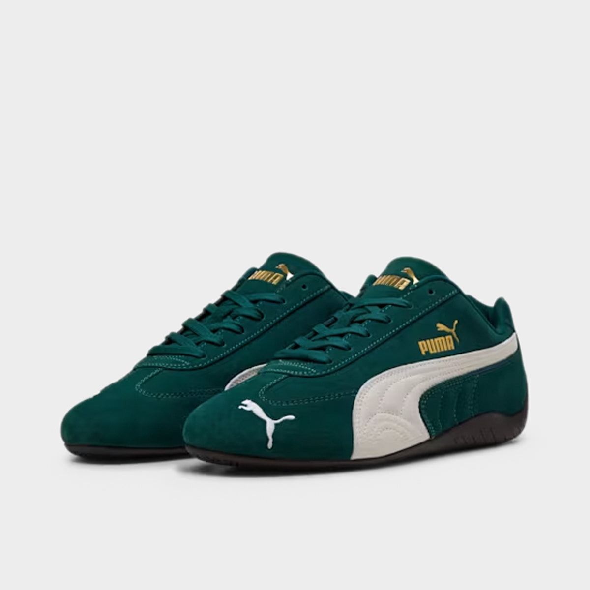 The PUMA Speedcat has been an icon of racing culture for over 25 years, emulating speed, precision and performance. The Speedcat's was originally designed as a fireproof Formula 1 style, and over the decades has found its way from the tracks to the streets. Enveloped in a soft suede, this silhouette includes the PUMA Cat logo on the toe and is finished with gold foil-style details throughout.