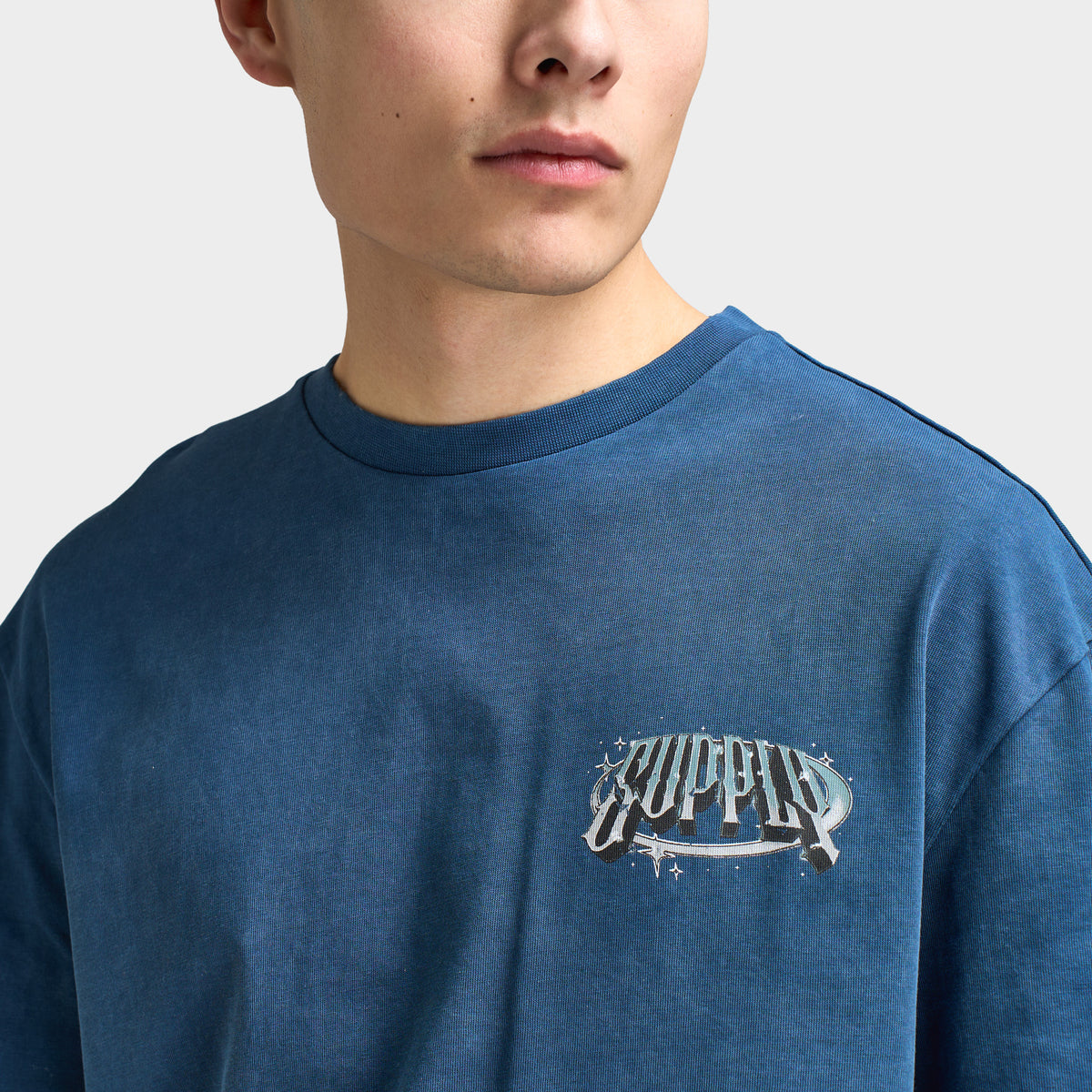 The Supply & Demand Chrome Star Graphic T-Shirt brings bold energy to your everyday fit. Designed with a classic crew neckline and dropped shoulders, this tee delivers a relaxed, laid-back vibe with slightly longer sleeves for extra coverage. The standout feature? A striking Supply star graphic at the chest, paired with a large statement print on the back for maximum impact. Made from 100% cotton, it’s soft, breathable, and built for all-day comfort. Whether you're hitting the streets or keeping it casual, this tee makes sure your style stays sharp.