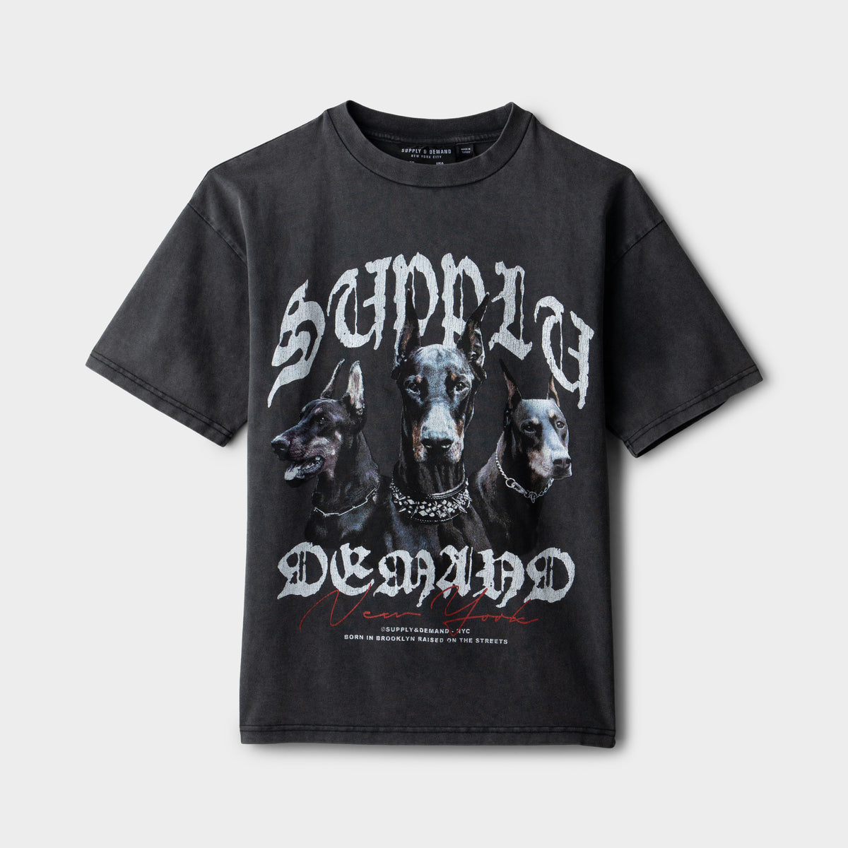 The Supply & Demand Junior Boys' Brooker Tee brings bold energy to everyday style. Featuring a classic crew neckline and relaxed fit, this tee is all about laid-back comfort with a streetwear edge. The washed look gives it a vintage vibe, while the striking Doberman graphic at the chest commands attention. Finished with bold Supply & Demand branding, it’s the perfect pick for young trendsetters looking to stand out. Crafted from 100% cotton for all-day wearability.