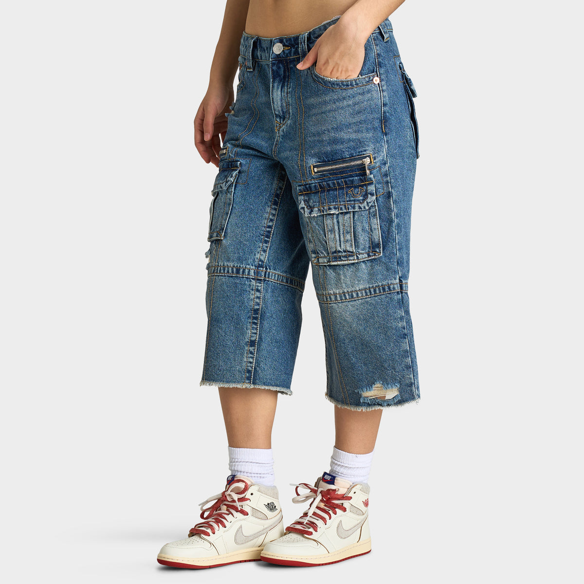 True Religion Women's bobbie Baggy Cargo Capris / Easy Hazel - Blue / 24