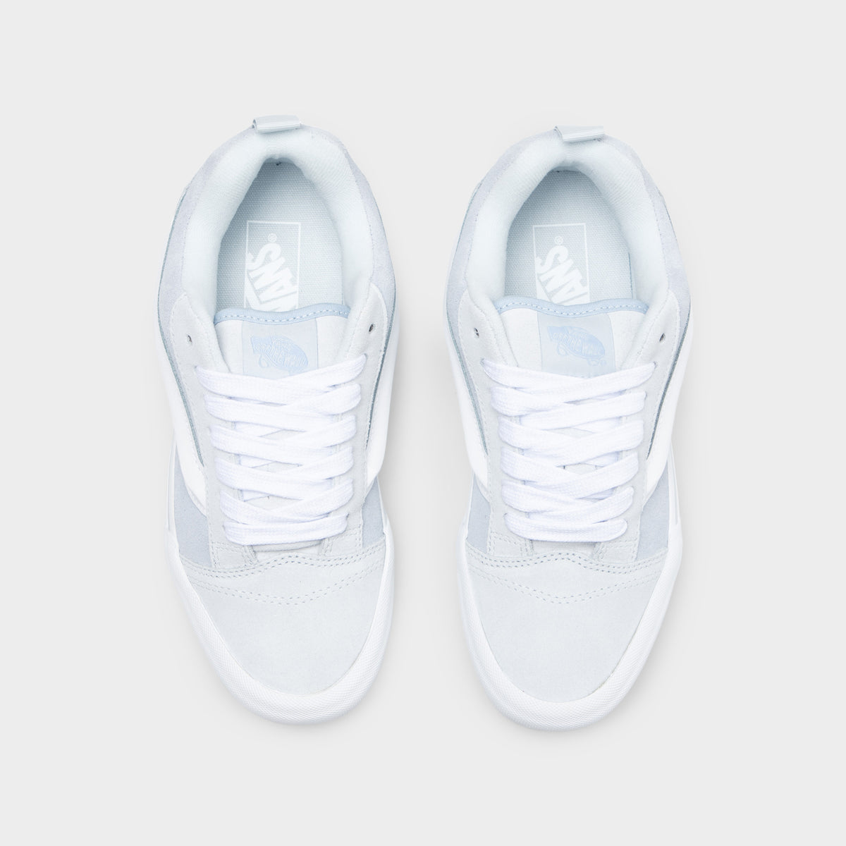 The Vans Women's Knu Skool amps up the drama with its puffy tongue, 3D-moulded Sidestripe, and chunky laces, blending the iconic Old Skool design with today's bold trends. Crafted with sturdy suede, it features a plush ankle collar and Vans’ signature rubber waffle outsole for a mix of comfort and style.